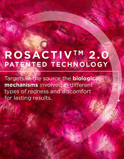 The NEW ROSACTIV™ 2.0 PATENTED* TECHNOLOGY targets at the source the biological mechanisms involved in different types of redness and discomfort and visibly reduces these effects with long-lasting results thanks to:
